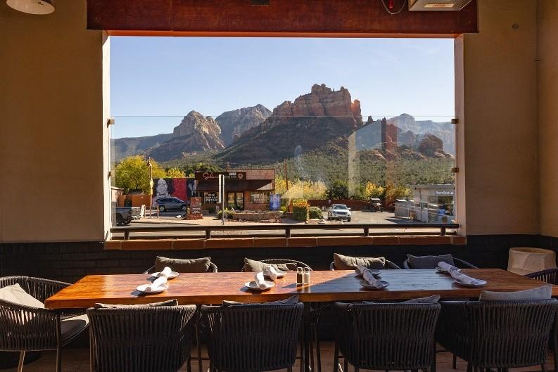 From the moment you step inside Shorebird, the view commands attention. Windows that frame Sedona’s magnificent red rock formations, bathing the dining room in that warm, golden morning light that makes everything feel a little more special. It’s the kind of backdrop that turns an ordinary meal into a moment you’ll talk about long after you’ve left town. Tables are thoughtfully arranged so that guests can soak in the scenery alongside their meal, making every seat in the house feel like the best one.