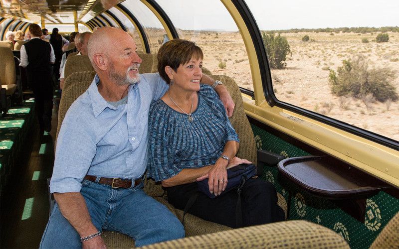 The historic Grand Canyon Railway departs daily from Williams, Arizona to the awe-inspiring Grand Canyon. Enhance your Grand Canyon experience with an entertaining train ride featuring western musicians and cowboy characters on vintage rail cars. Grand Canyon Railway is a trip back in time on lovingly restored rail cars. Out your window, the terrain changes from high desert to prairie, prairie to pine. It’s a view that’s ever-changing until you come across a view so brilliant.